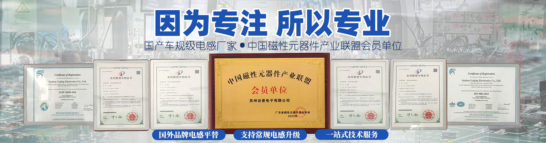 蘇州谷景電子有限公司,專業電感、共模電感、貼片電感、工字電感、色環電感生產廠家,擁有23年品牌代工生產經驗,原材料均采用進口,全自動化繞線、焊接一體機、全自動化封測等生產工業,電感產品廣泛應用在開關電源、LED顯示系統集成、功放影響、通信設備、汽車領域。